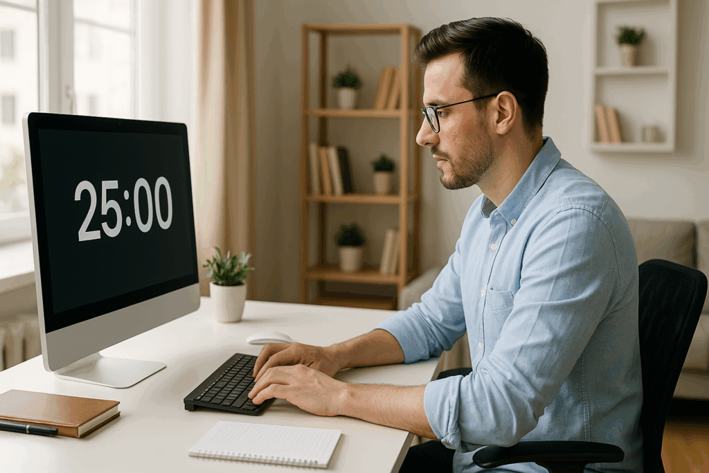 Se a barreira é começar, prometa só 10 minutos. Muitas vezes, o início vence a inércia e você segue. (Dica: use um timer visível.)